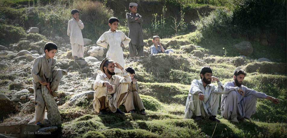Die Männer sind leise. Wenige sprechen. Manche schauen in den Himmel, an dem der Halbmond leuchtet, der kurz vor der Dämmerung etwas Licht spendet, bevor die Laternen angehen. Andere scheinen versunken zu meditieren, vielleicht zu beten. Es sind Männer unterschiedlichen Alters. Sie tragen Jeans und Poloshirt, modische Kleidung mit irgendwelchen Logos darauf und Sprüchen – oder einen Shalwar Kamiz, die traditionelle Kleidung der ganzen Region. Generationen, Lebensstile unterschiedlichster Art scheinen dort versammelt. Alle indes mit demselben Glauben.