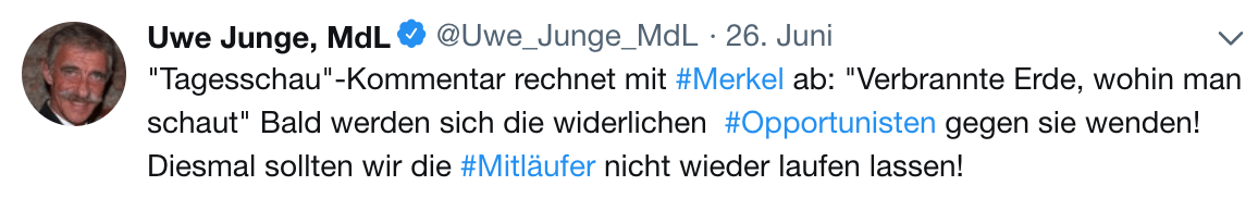 Nein, Besorgnis ist da nicht. Da ist so viel blinder Hass, dass es einen ekelt. Alles, was nicht „deutsch“ ist, muss weg. „Major Pilot“, ein Sympathisant der Rechten, schrieb, als fast das ganze Land für die Freilassung von Deniz Yücel kämpfte: „Hoffe, der verrottet im türkischen Knast!“ Die sog. AfD ist in Wirklichkeit eine Alternative für (intellektuell) Abgehängte. Gewiss nicht für unsere liberale Demokratie.