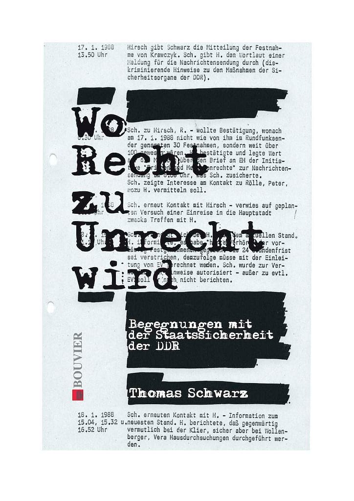 © Thomas Schwarz „Wo Recht zu Unrecht wird | Begegnungen mit der Staatssicherheit der DDR“, erschienen im Bouvier-Verlag Bonn 2020
